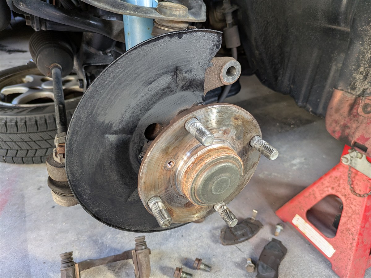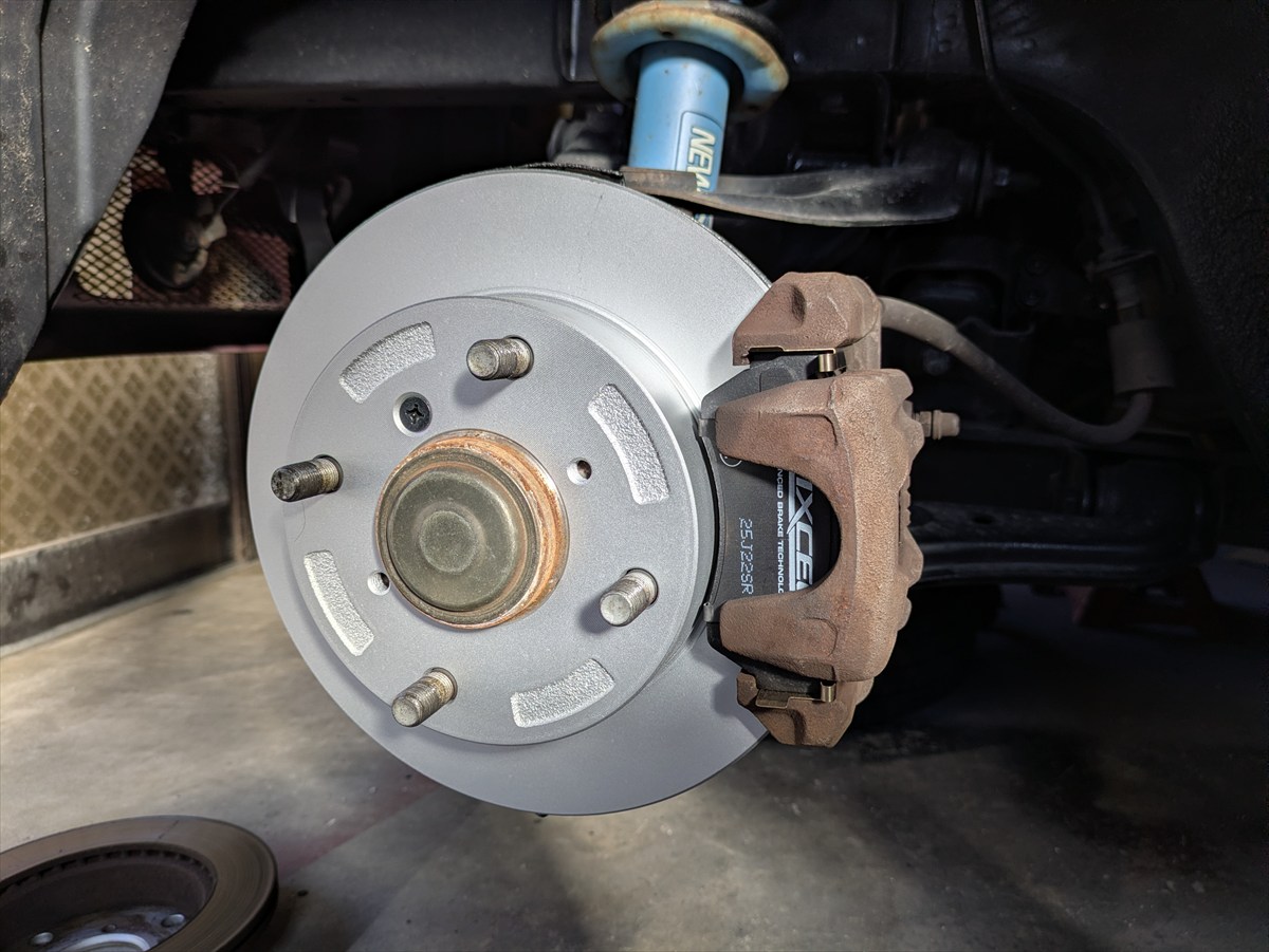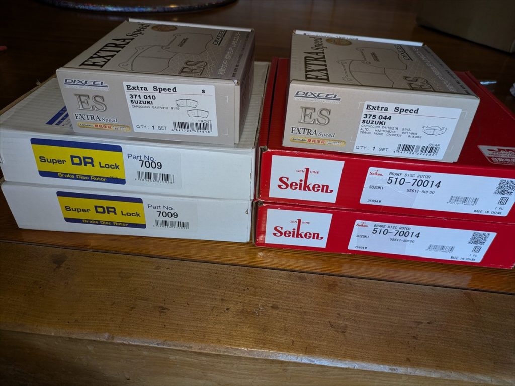 カプチーノですが、ブレーキディスクローターが波打っているのでローターとパッドを交換しました。最近続いているリフレッシュの一環でもあります(お金が…)。