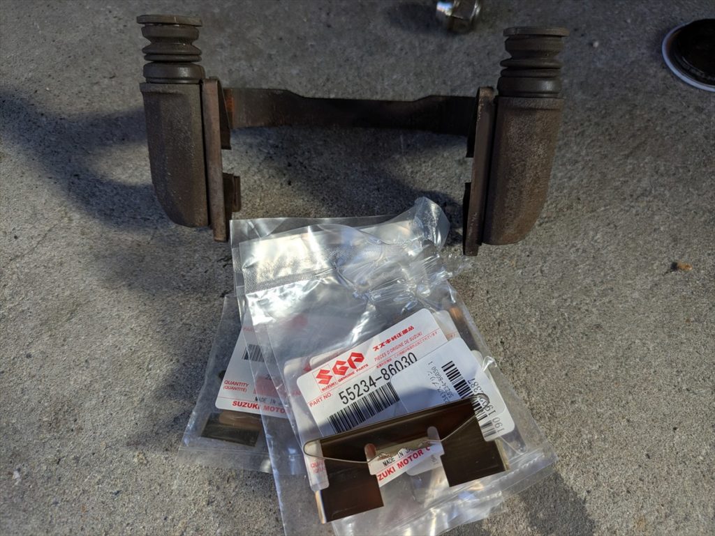 キャリパーの金具(スプリング)も部品が出るうちに新品を購入しました。1枚1,000円もします。左右で4個必要です…。