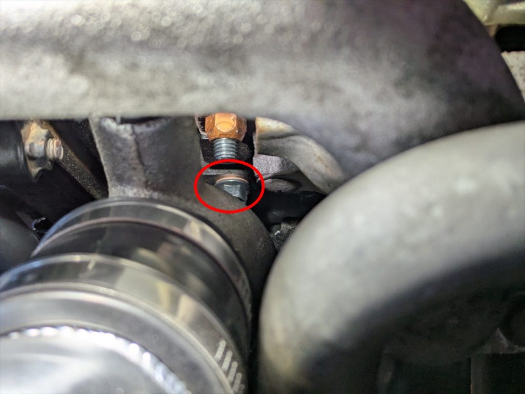 一時的な対策として、元のボルトにワッシャーをかませてステーの厚み分かさ増ししました。