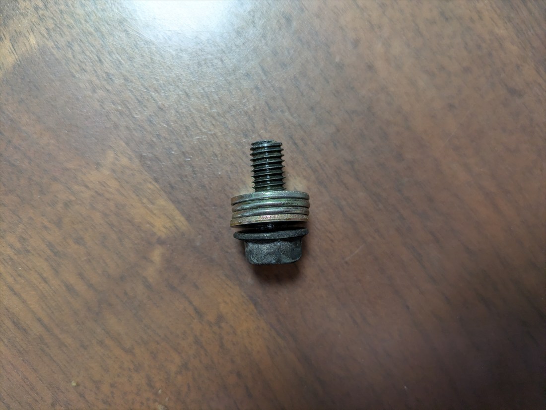 ↑の一時しのぎでもオイルは漏れていませんでしたが、相手がエンジンということもありあまり気もちの良いものではないので短いボルトかつガスケットで対応することにしました。