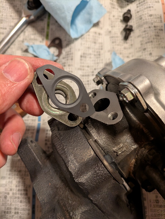 これでタービン側の用意は整いました。ほかに各部ガスケットに取り付けボルト、ホース等をモノタロウで沢山購入しました(4万円近くかかったような…)。