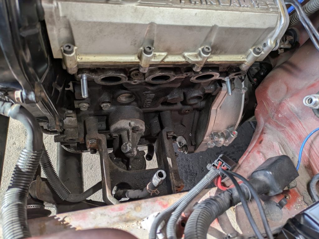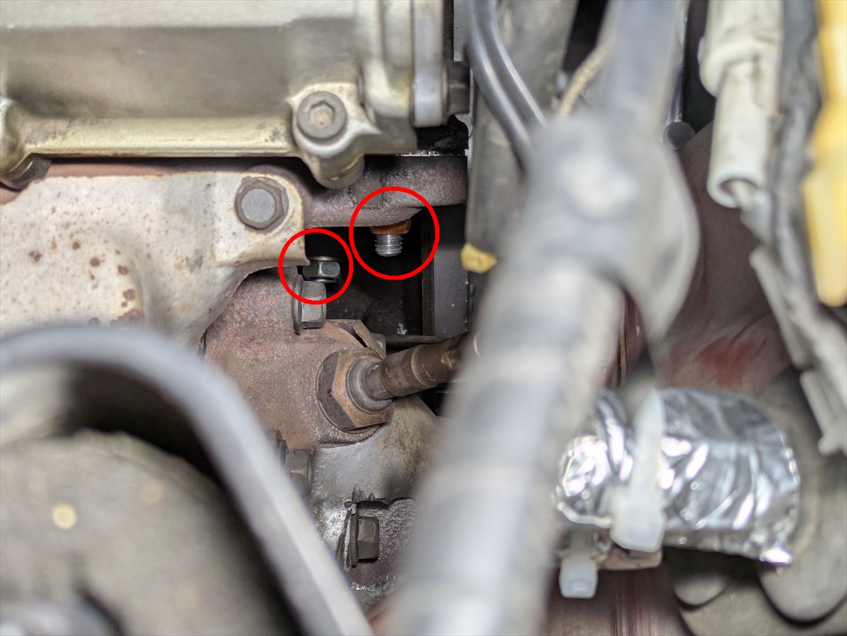カプチーノのF6Aエンジンはエキマニのスタッドボルト2本がエンジン内に貫通しているため、スタッドボルトのシール剤が劣化してくるとエンジンオイルが漏れるのが定番らしいですね。