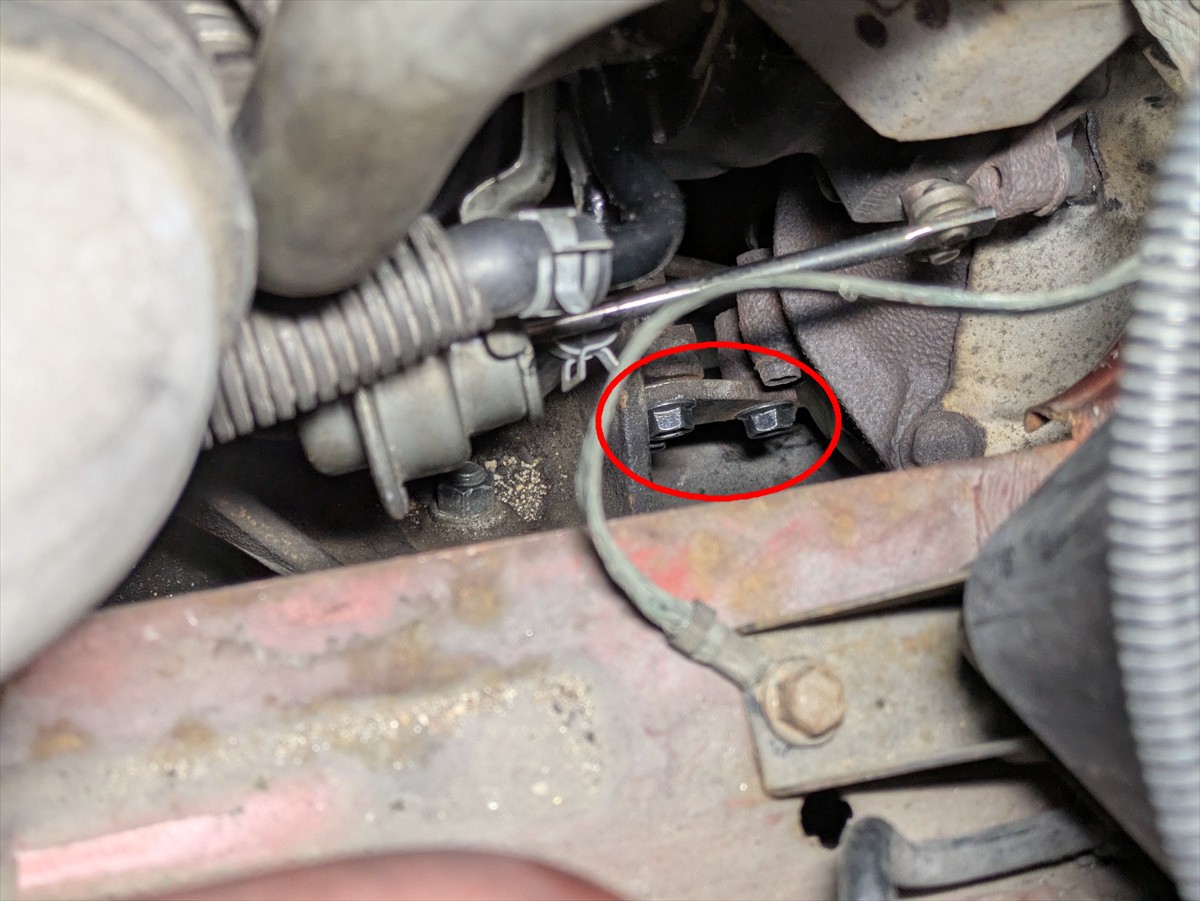 - 触媒-エンジンマウント間の三角ステー取り外し(助手席フロントタイヤを外して)