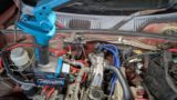 このカプチーノは車両購入時からエアコンが効かず、いつか直そうと思いかれこれ17年…今後もこのまま放置な気がするので、作業性(整備性)を上げるためにタービン交換のタイミングでエアコン関係部品を撤去することにしました。夏の日中はとても乗れたものではありませんが…。